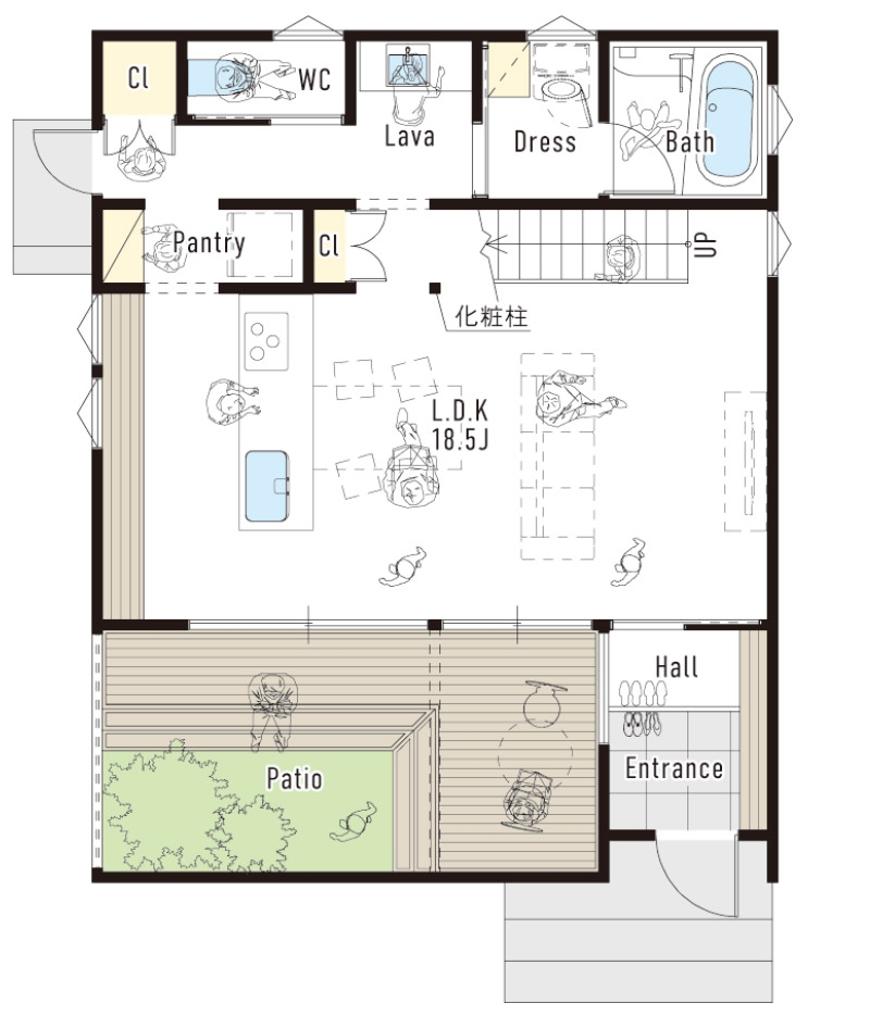 周辺環境を気にすることなく屋外を一体化できるスタイルの家です。趣味に没頭したり、家族や友人と自由な時間を過ごしたり、外から見えない中庭はまるで第二のリビング。自然の中で四季の移ろいを感じることができ、日々の生活がより豊かで充実したものに。